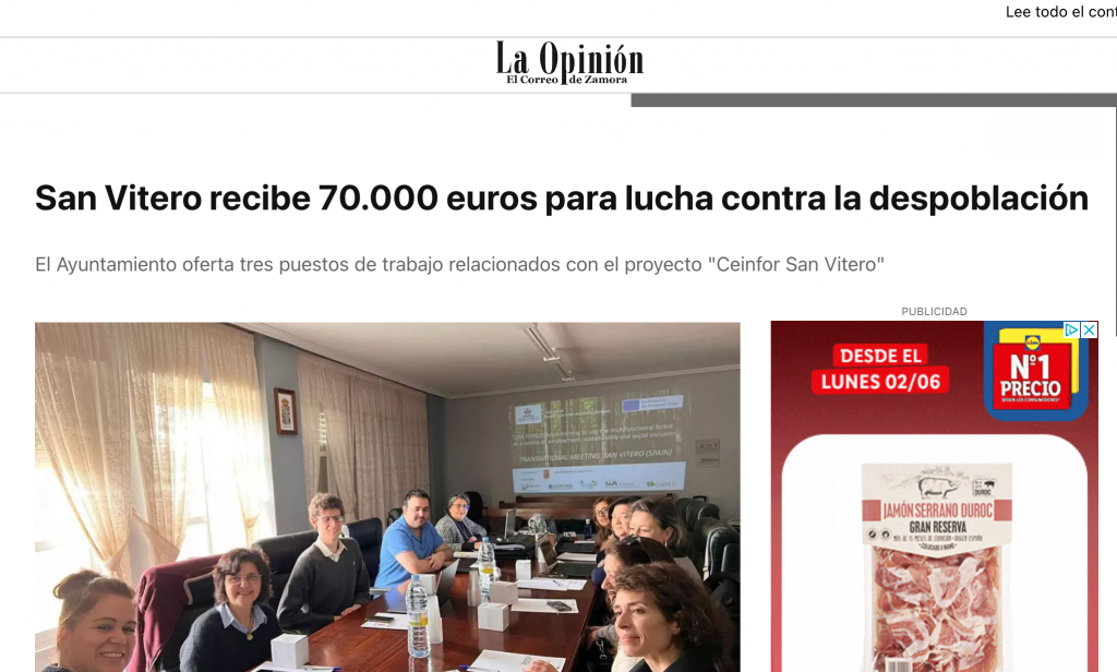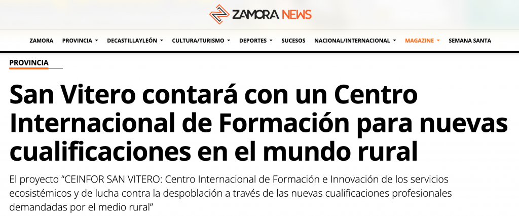 Como claro ejemplo de la puesta en marcha del Plan Estratégico de San Vitero se presentó de acuerdo con la convocatoria Orden TED/1358/2021, de 1 de diciembre, por la que establecen las bases reguladoras para la concesión de subvenciones para la financiación de proyectos innovadores para la transformación territorial y la lucha contra la despoblación. El Proyecto “CEINFOR SAN VITERO: Centro Internacional de Formación e Innovación de los servicios ecosistémicos y de lucha contra la despoblación a través de las nuevas cualificaciones profesionales demandadas por el medio rural” que fue aprobado por el Ministerio para la Transición Ecológica y el Reto Demográfico entre los cientos de proyectos presentado en libre concurrencia en España.